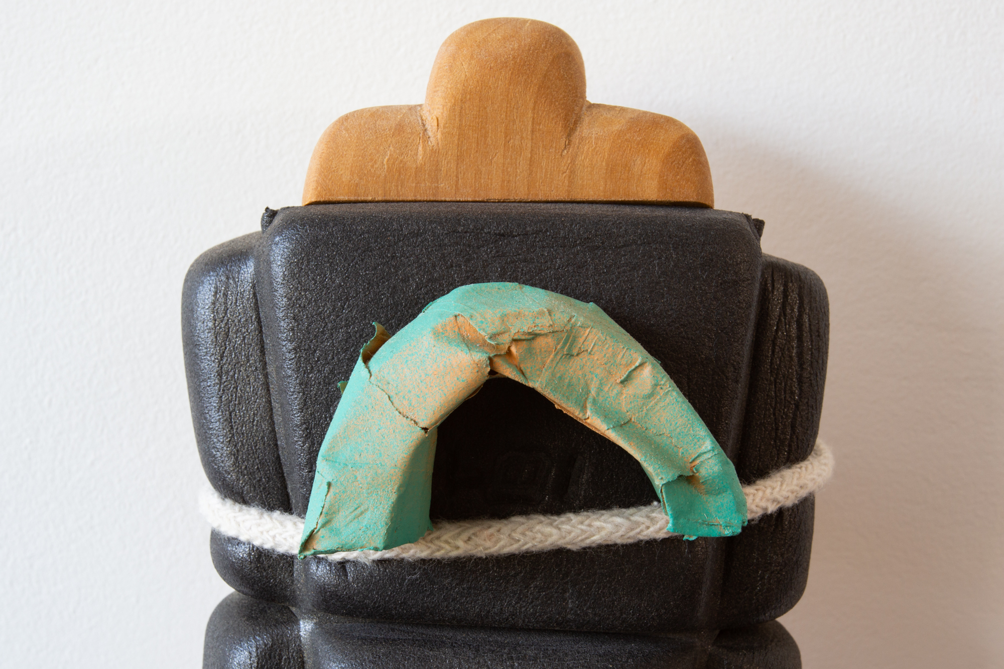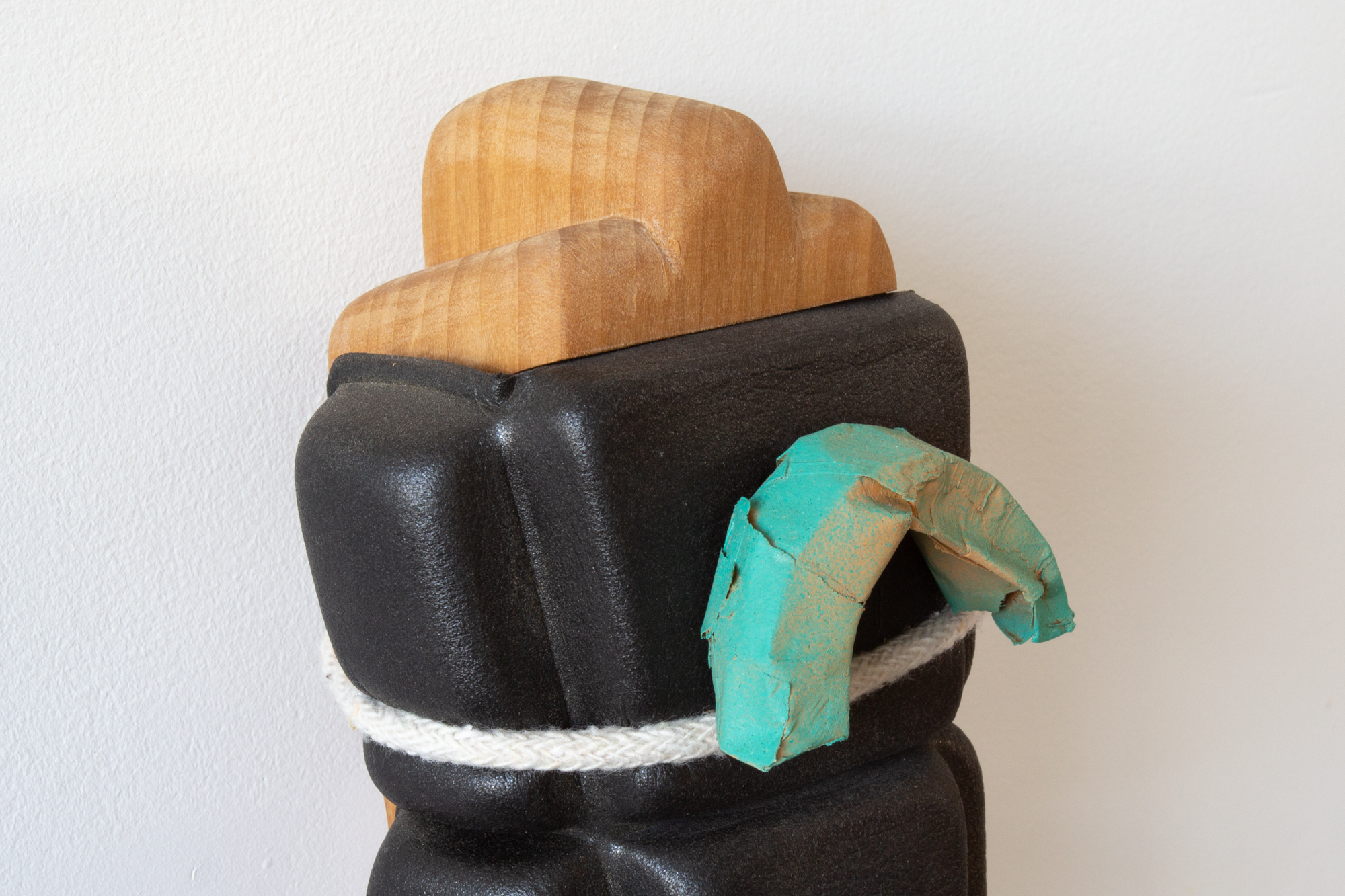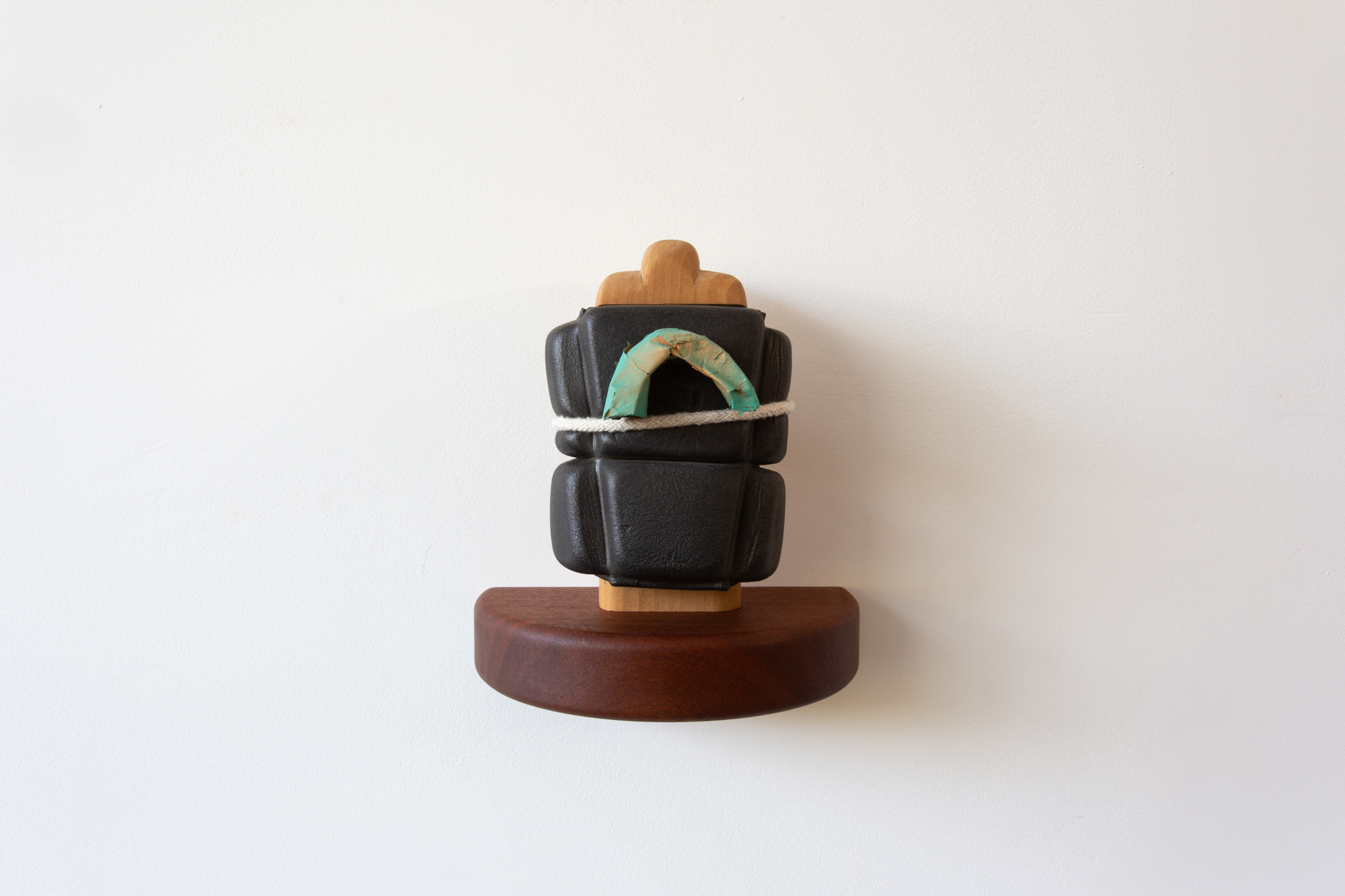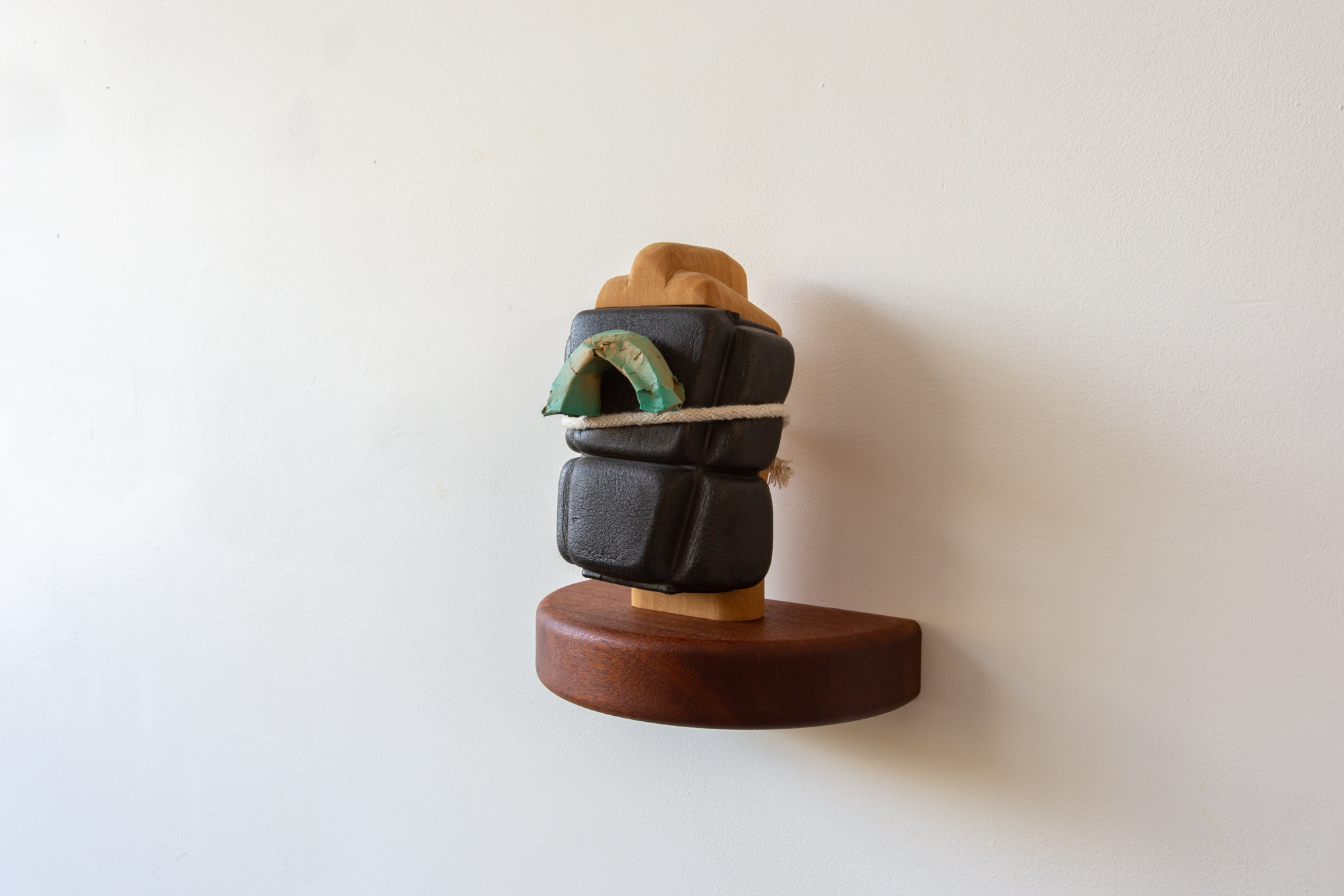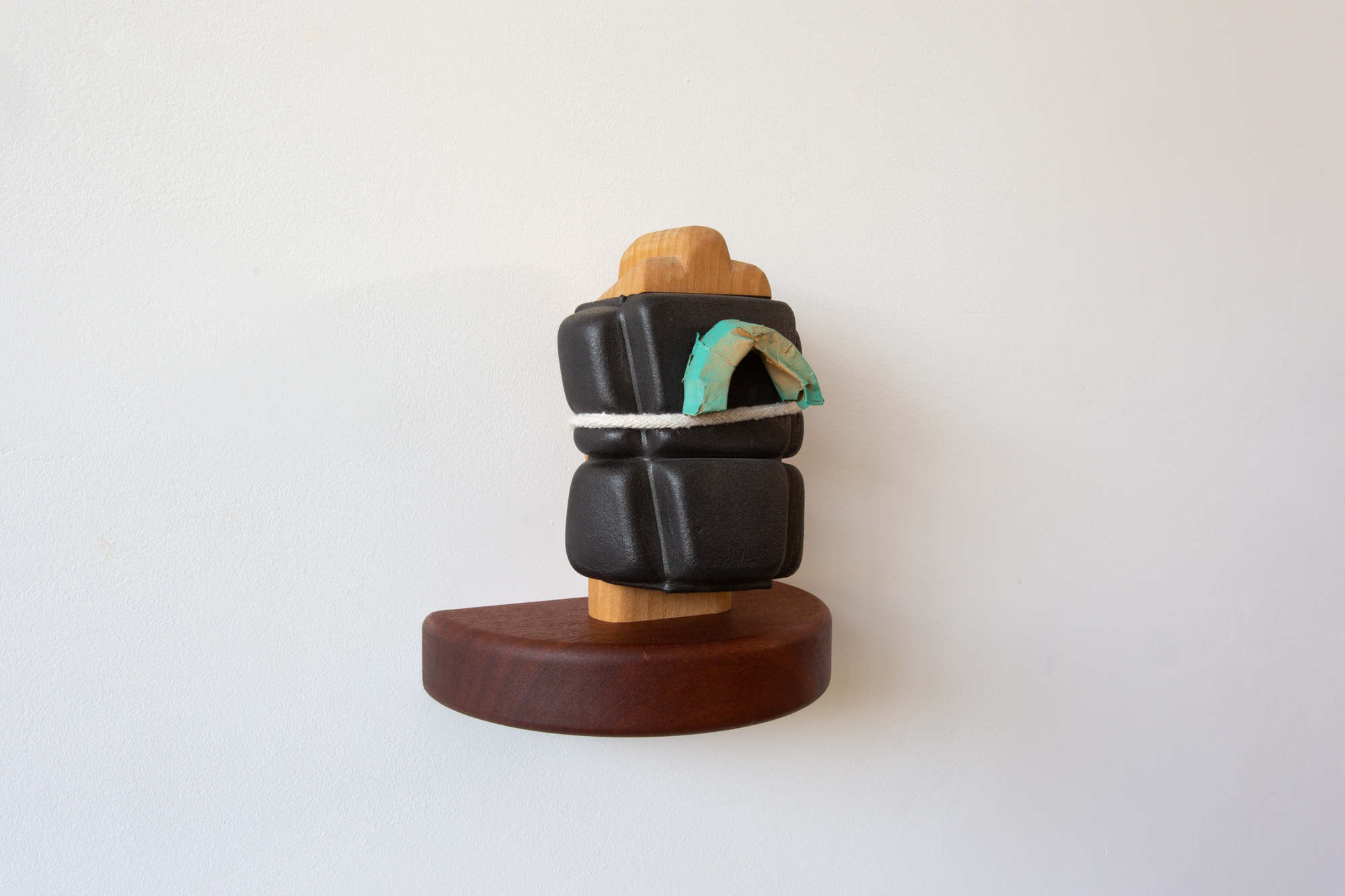 Despite Everything, 2022 Poplar, foam, chord, masking tape, spray paint, sapele shelf27cm x 12cm x 12.5cm