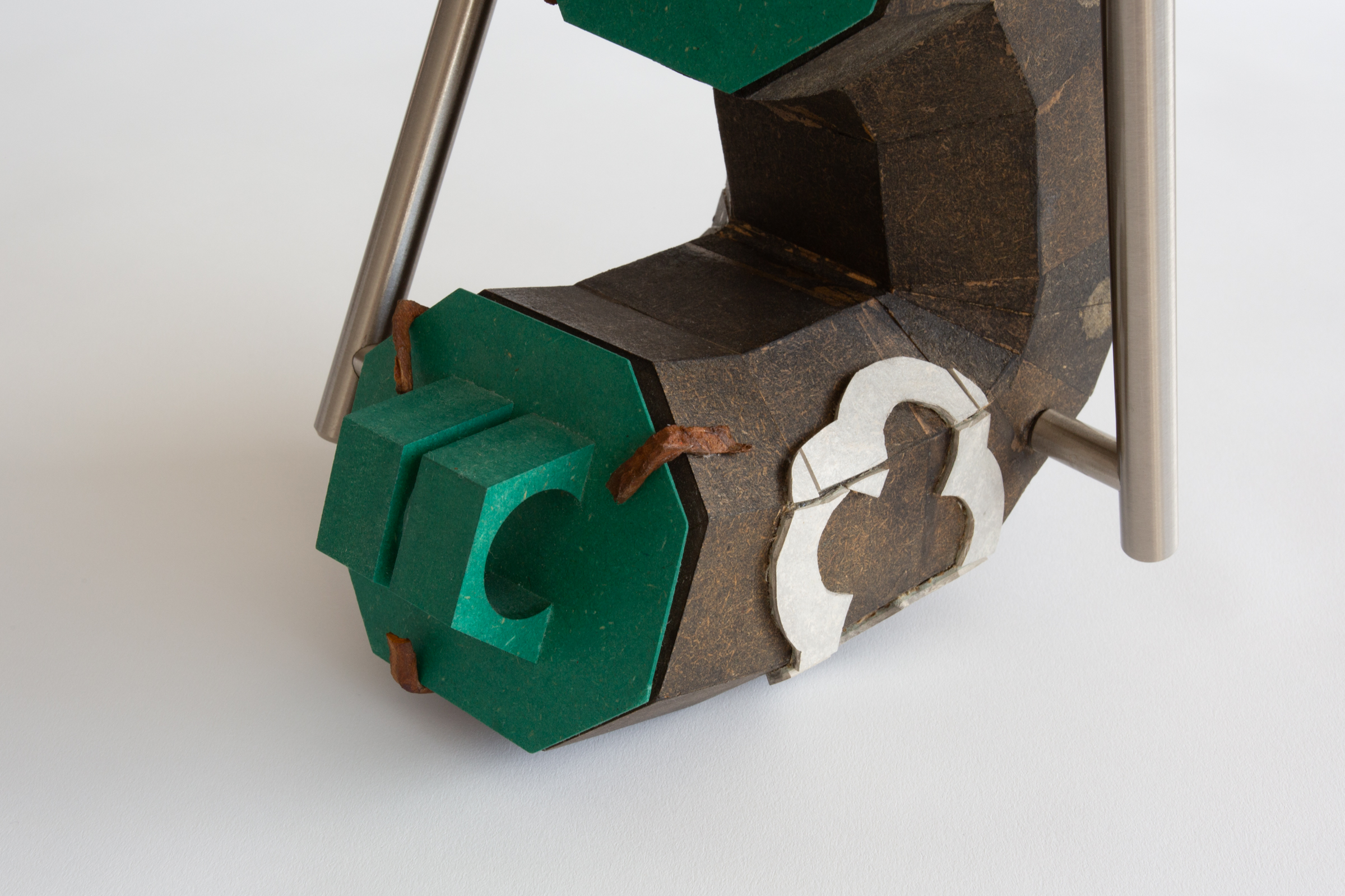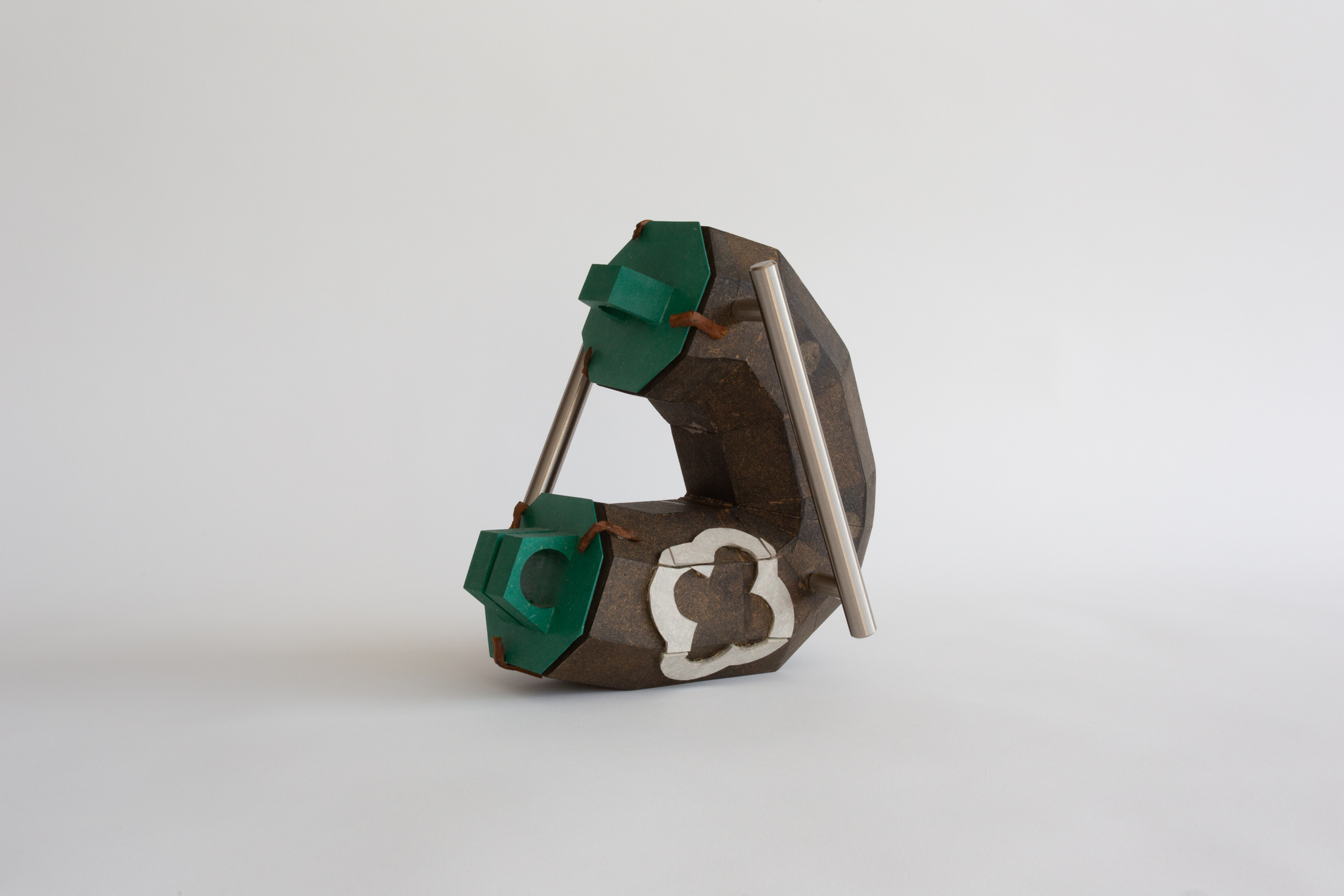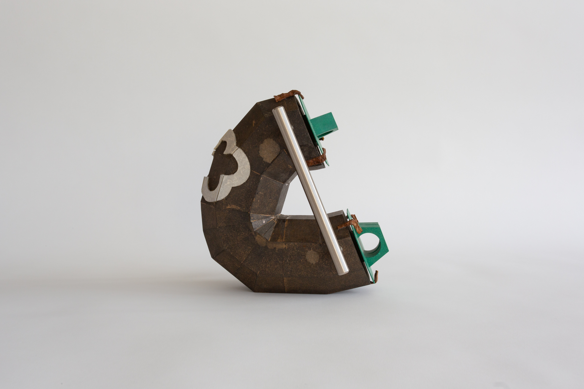 Becoming the Archetype, 2023 Dyed MDF, linoleum, valchromat, stainless steel, cardboard, acrylic paint. 21cm x 19cm x 15.5cm