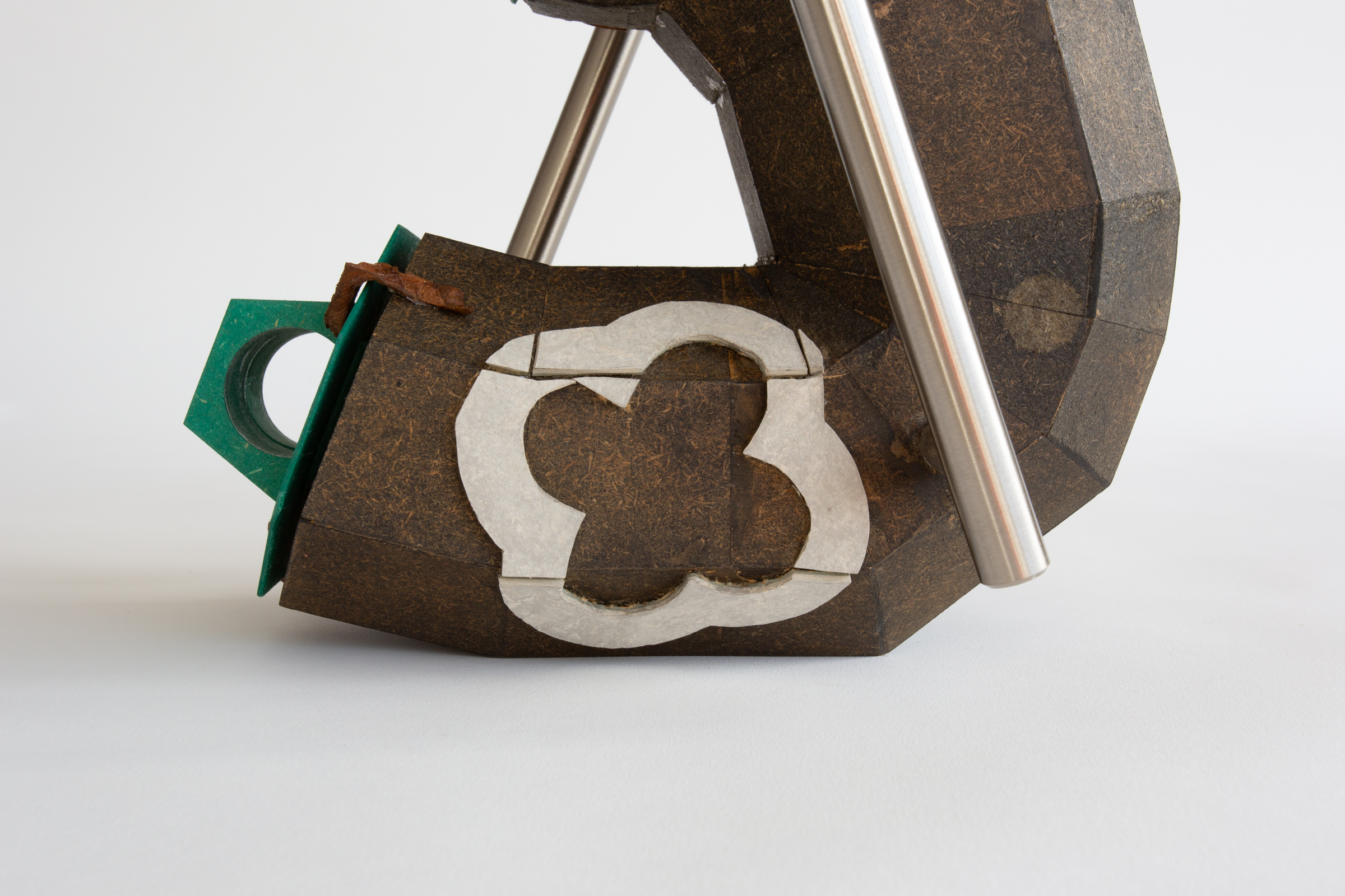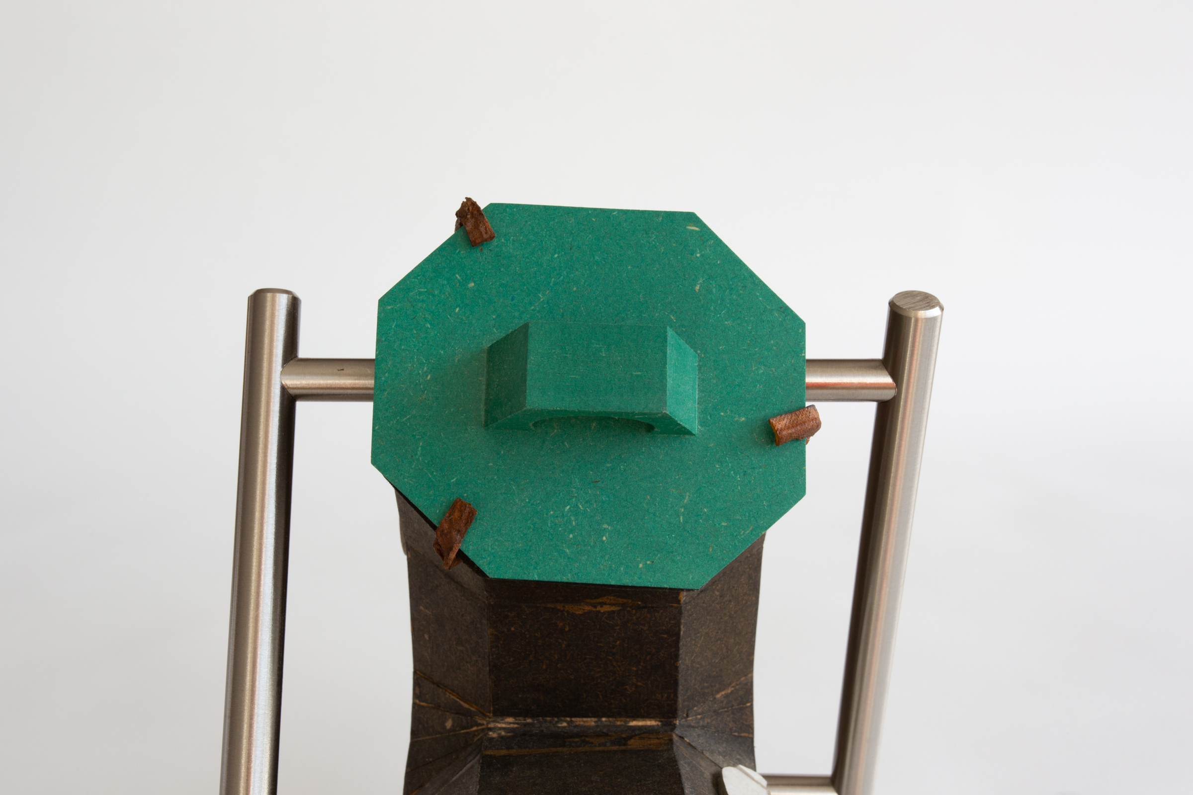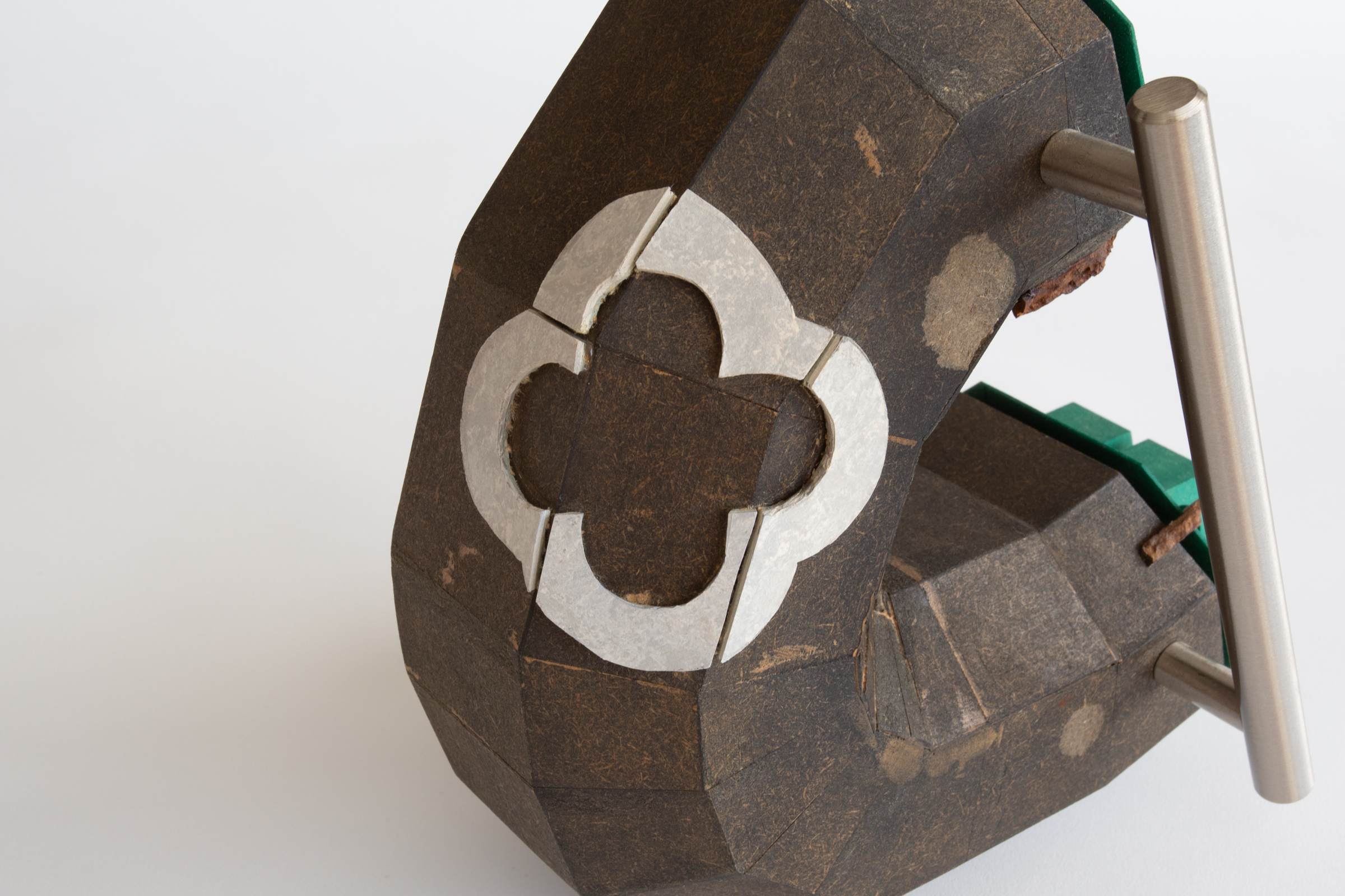 Becoming the Archetype, 2023 Dyed MDF, linoleum, valchromat, stainless steel, cardboard, acrylic paint. 21cm x 19cm x 15.5cm