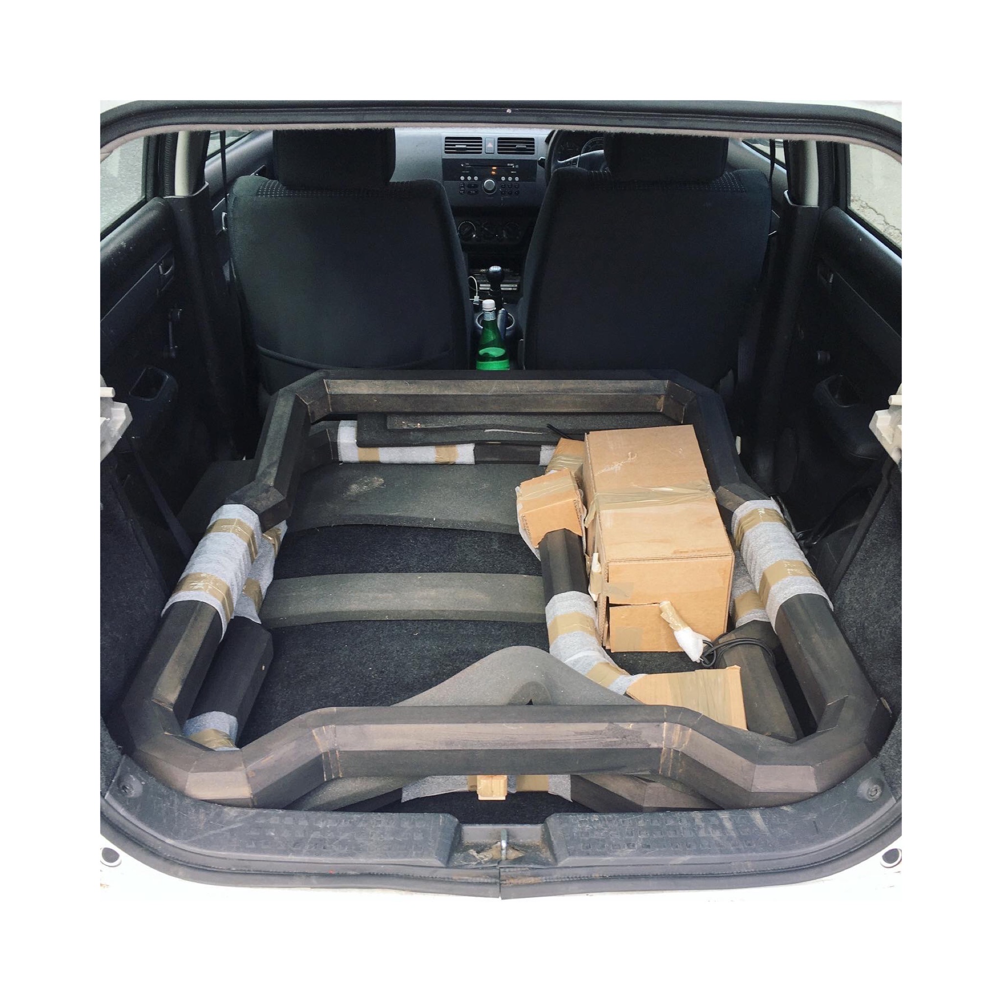 This Sculpture was designed to fit the outline of Dan Pasteiner's car boot, a Suzuki Swift which he drove 2000km across Europe from London, U.K. to Belgrade, Serbia during August 2020 in the midst of the global Covid 19 pandemic. Dan transported a car full of sculptures and rolled paintings to U10 Art Space in Belgrade for our joint exhibition The Long Goodbye. Exhibition info below: