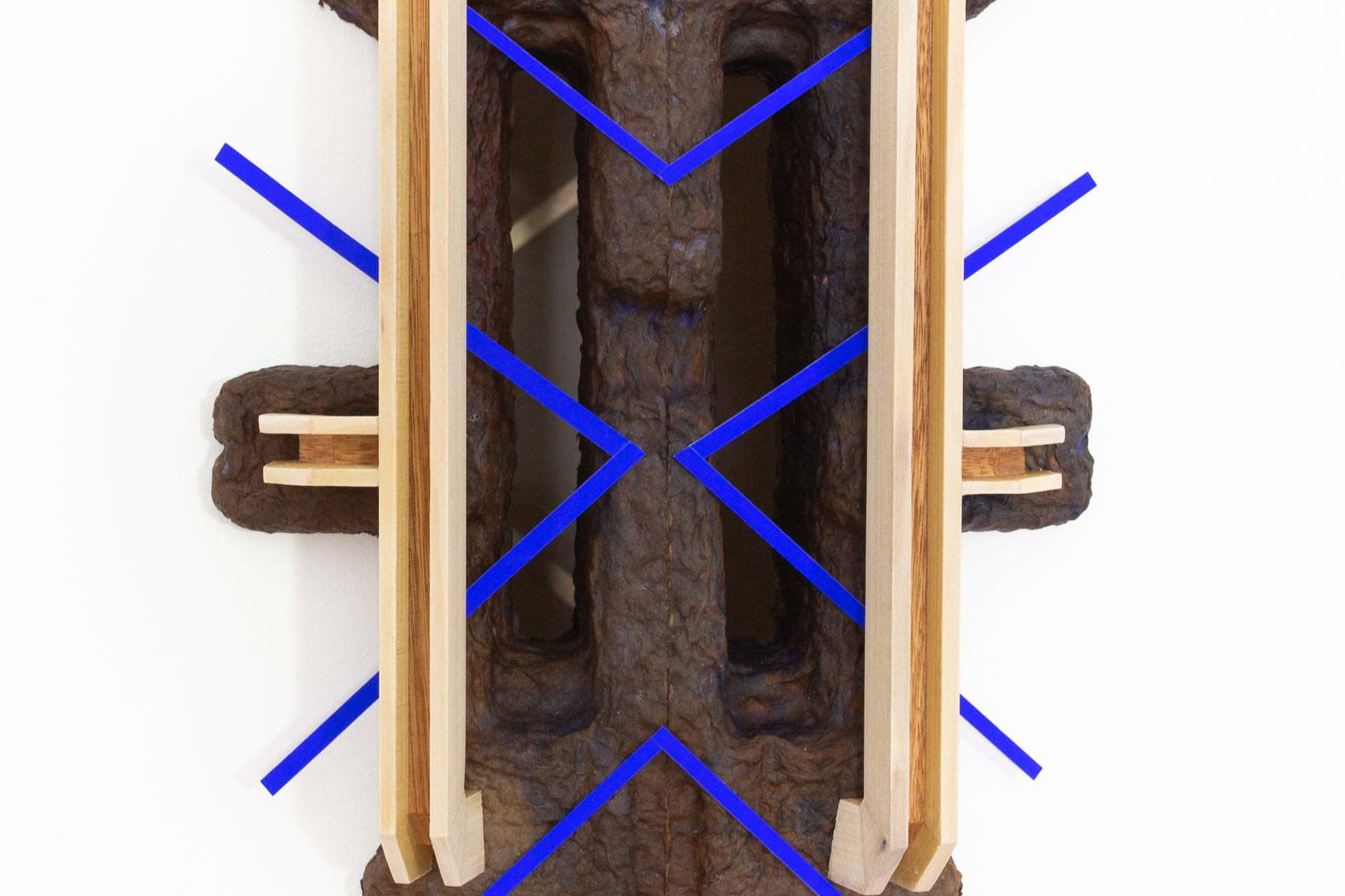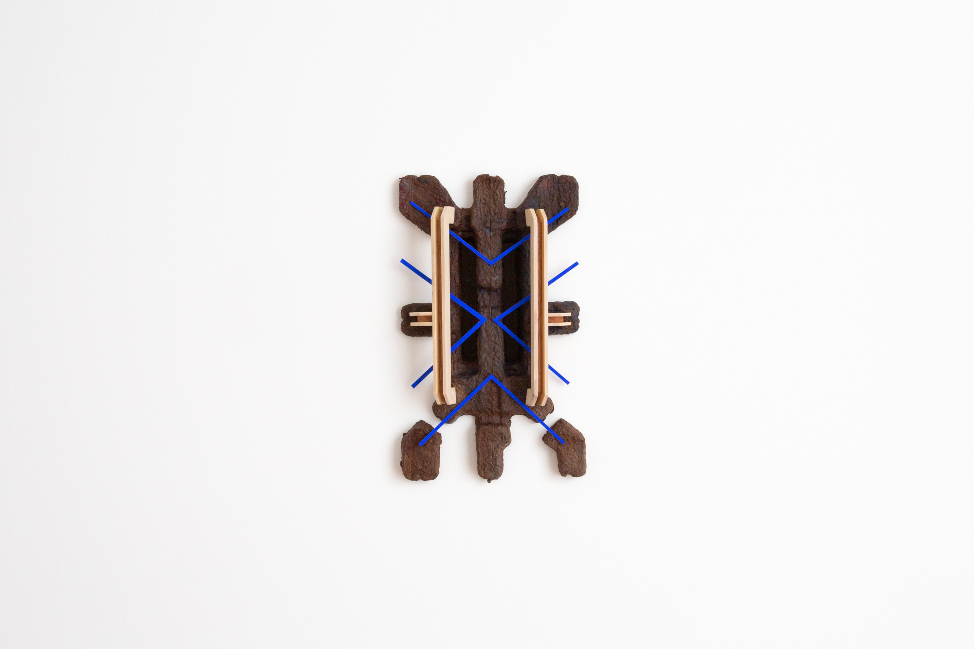 Project X, 2023 Poplar, sapele, paper pulp, paint, paper, MDF, magnets, reflective stickers33cm x 19cm x 7cm